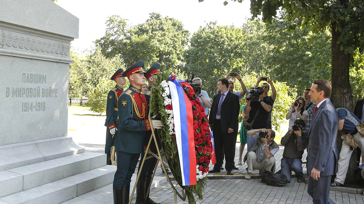 Председатель Госдумы принял участие в памятной акции, прошедшей на территории Мемориально-паркового комплекса героев Первой мировой войны на Соколе в Москве 29.07.2014, 00:00 1 из 5