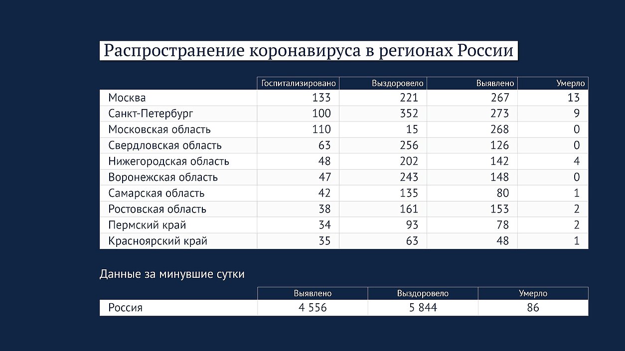 Статистика по заразившимся на 28 мая Новости Раздел 28.05.2022, 13:13 Дата и время 1 минута Время чтения 9738 Просмотров 18 Поделились Вконтакте Одноклассники Случаев заболевания — 18 319 848Случаев заболевания за последние сутки — 4556Человек выздоровело — 17 725 440Человек умерло — 378 870 Данные стопкоронавирус.рф
